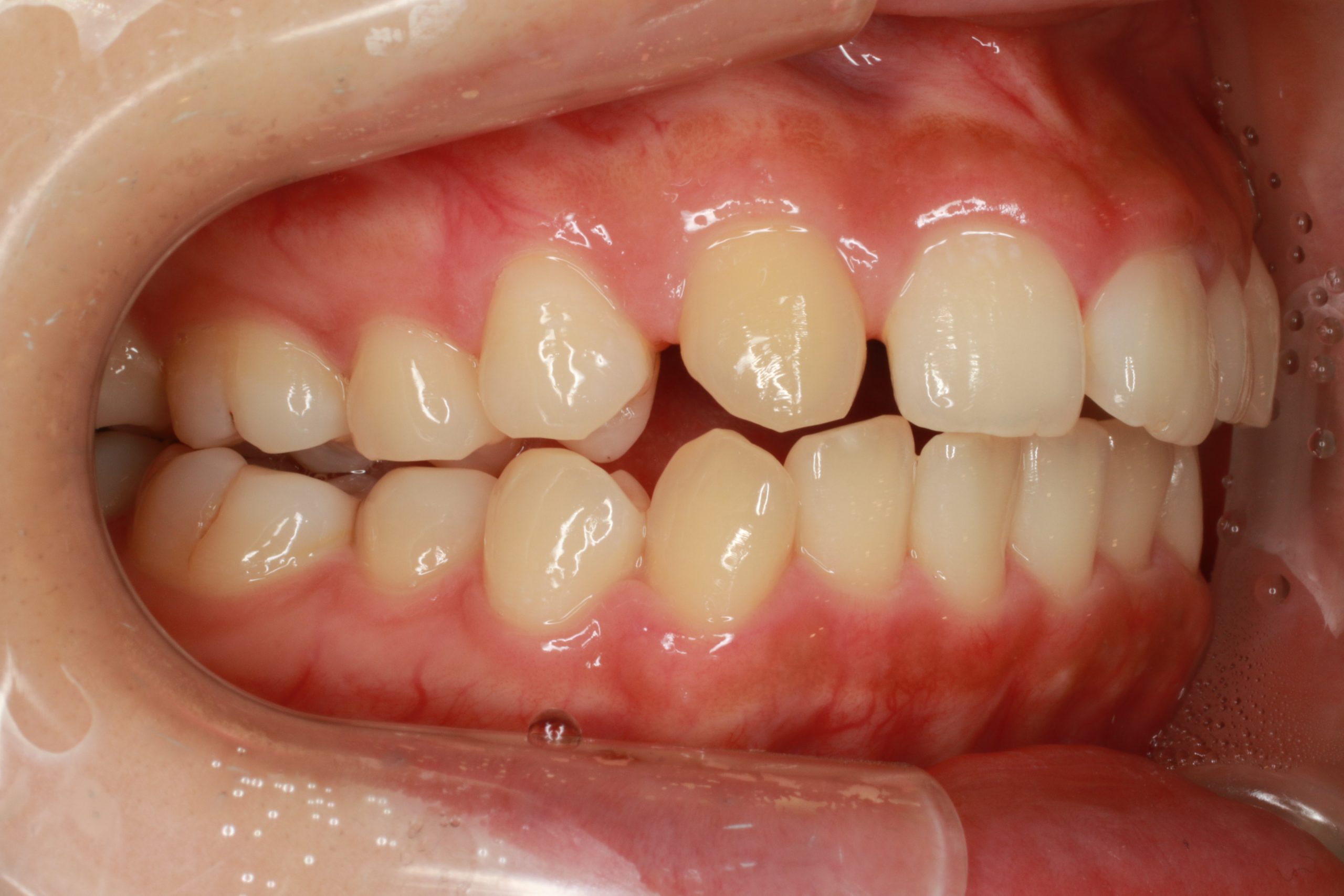 左上1番目の歯出ている、左上3番目の歯捻じれている(治療期間:2年/通院30回)